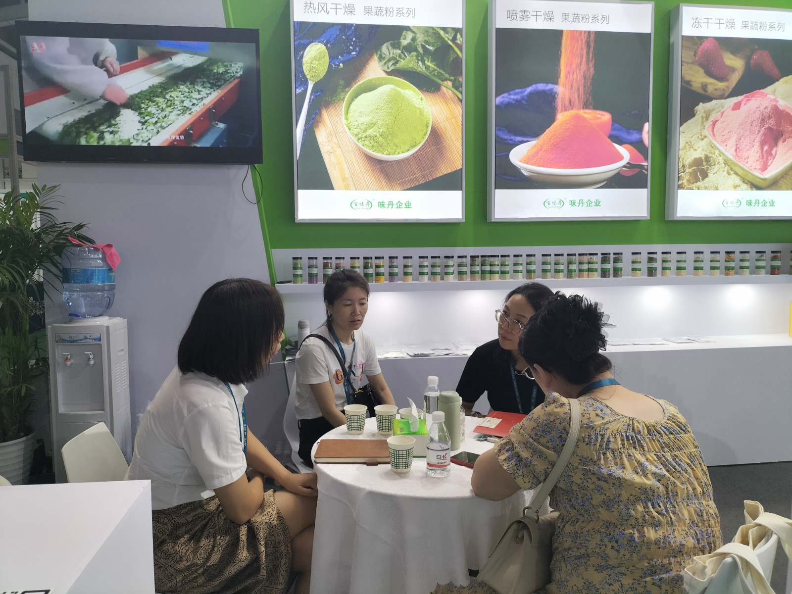 來自國內國際食品相關的精準買家,比如飼料加工行業、雜糧粥生產企業、運動飲料加工企業、保健食品代銷、思域推廣平臺,都來到沈陽味丹展位上,深入交流。對瓶瓶罐罐裝的五顏六色樣品,不同工藝的產品,產生濃厚興趣,日接待量達到上千人。其中,西蘭花粉、番茄粉、紫薯粉、芒果粉、樹莓粉,特別受大家青睞;因為參與此次展會,我們也精準地捕捉到行業趨勢的信息。未來,凍干果蔬粉,需求量增大,必然是發展趨勢。